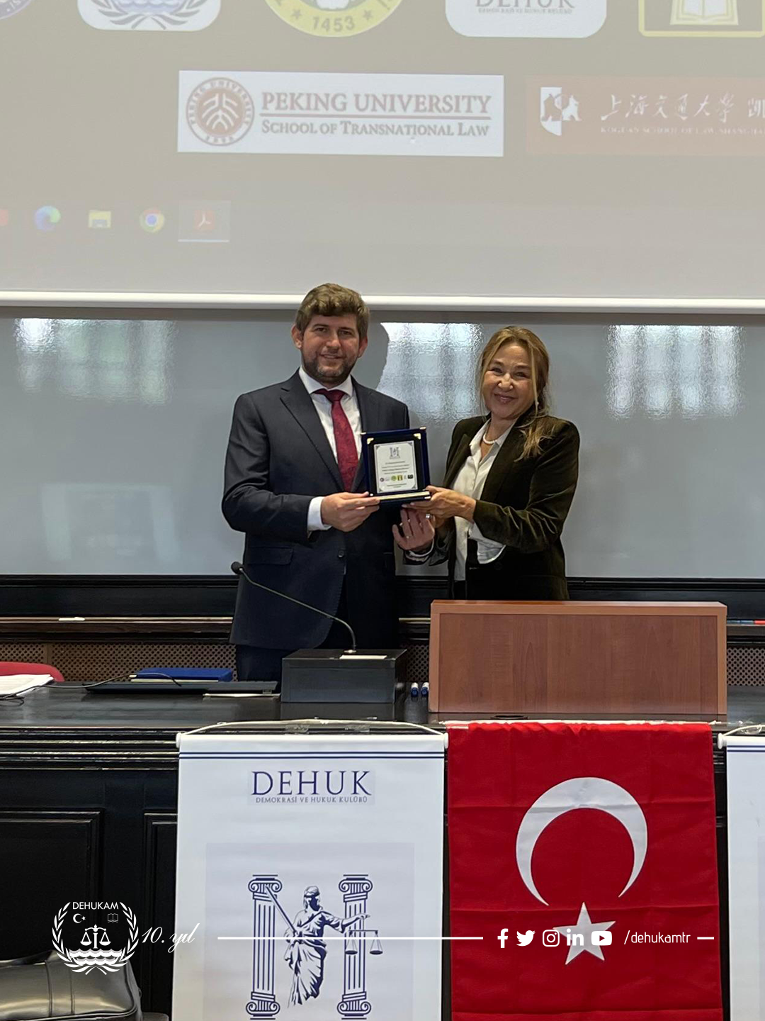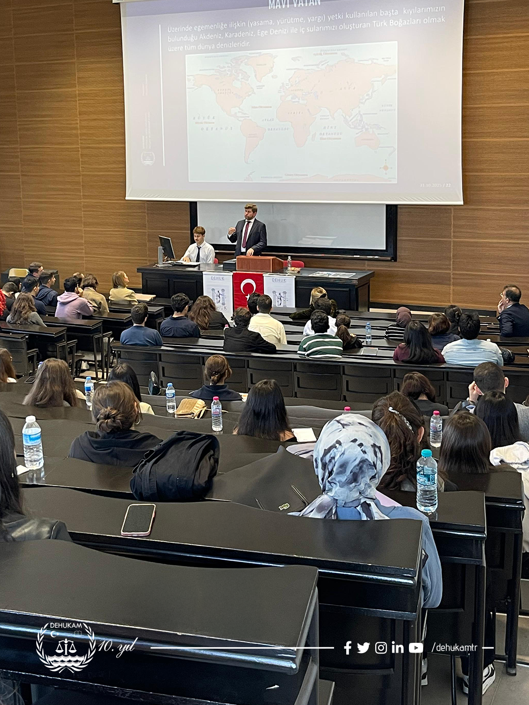 DEHUKAM Müdürü Dr. Mustafa BAŞKARA 31 Ekim 2025 tarihinde İstanbul Üniversitesi Hukuk Fakültesi Demokrasi ve Hukuk Kulübü tarafından düzenlenen Deniz ve Kutup Hukuku Zirvesinde “Türkiye’de Deniz Hukukunun Tarihsel Gelişimi ve DEHUKAM’ın Rolü” başlıklı bir konuşma gerçekleştirdi. Konuşmasında Türkiye’de deniz hukukunun gelişim sürecini tarihsel bir perspektiften ele alarak, DEHUKAM’ın ulusal ve uluslararası deniz hukuku çalışmalarındaki önemine değinen Dr. Mustafa Başkara, DEHUKAM’ın deniz çevresinin korunması, deniz yetki alanları ve kutup hukuku gibi alanlarda yürüttüğü araştırma faaliyetleri hakkında bilgi verdi.