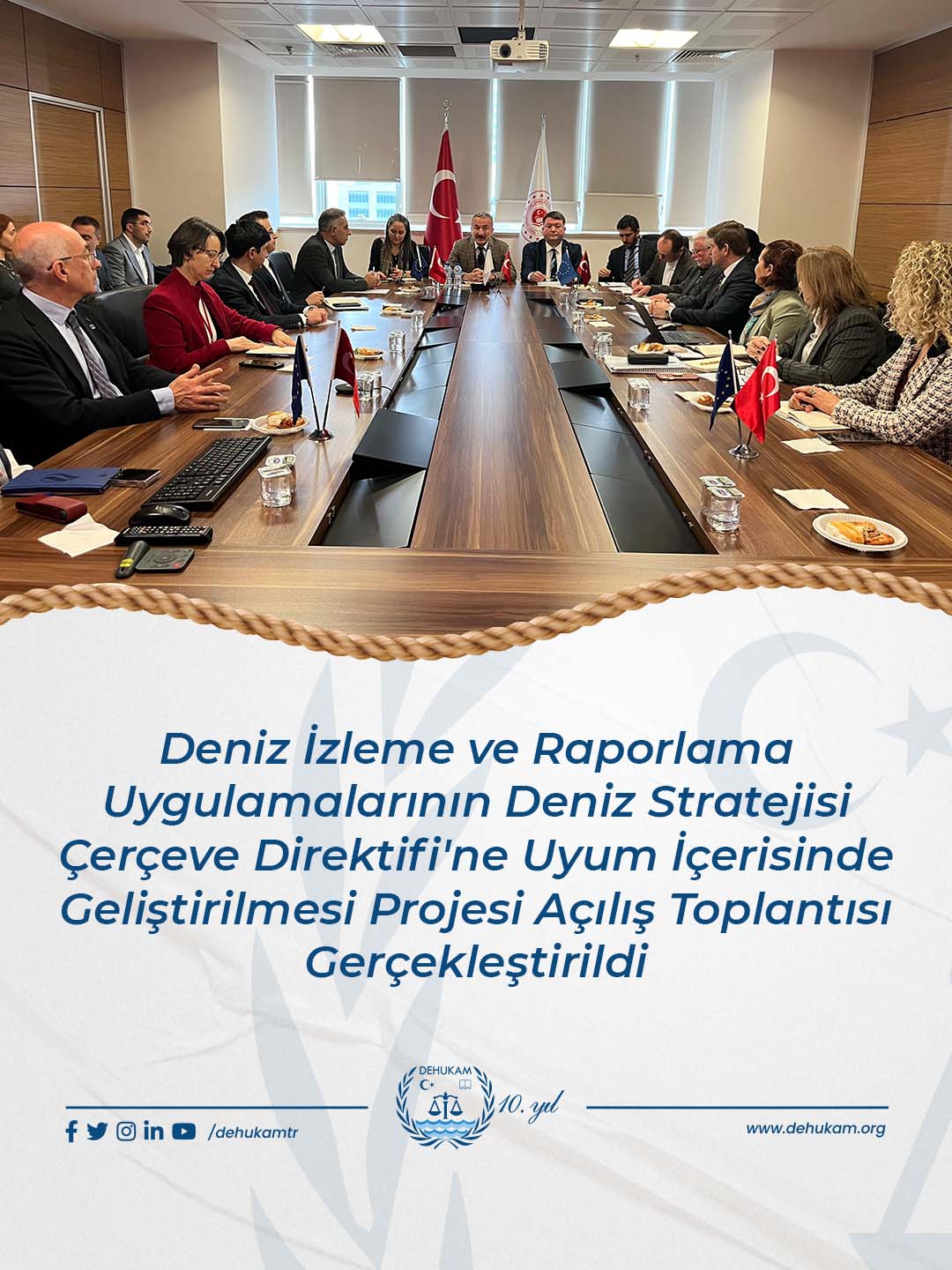 The Kick-off Meeting of the project titled “Improving marine monitoring and reporting practices in compliance to Marine Strategy Framework Directive (MARDA)” conducted by the Ankara University National Center for the Sea and Maritime Law (DEHUKAM) in collaboration with NIRAS IC and the Romanian National Institute for Marine Research and Development (INCDM), and supported under the third period of the European Union’s (EU) Instrument for Pre-Accession Assistance (IPA III)—was held on 7 January 2026, hosted by the Ministry of Environment, Urbanization, and Climate Change. Within the scope of the project, of which the Ministry of Environment, Urbanization, and Climate Change is the primary beneficiary, it is aimed to facilitate Türkiye’s compliance with the EU Marine Strategy Framework Directive (MSFD) and to advance marine monitoring and reporting practices.