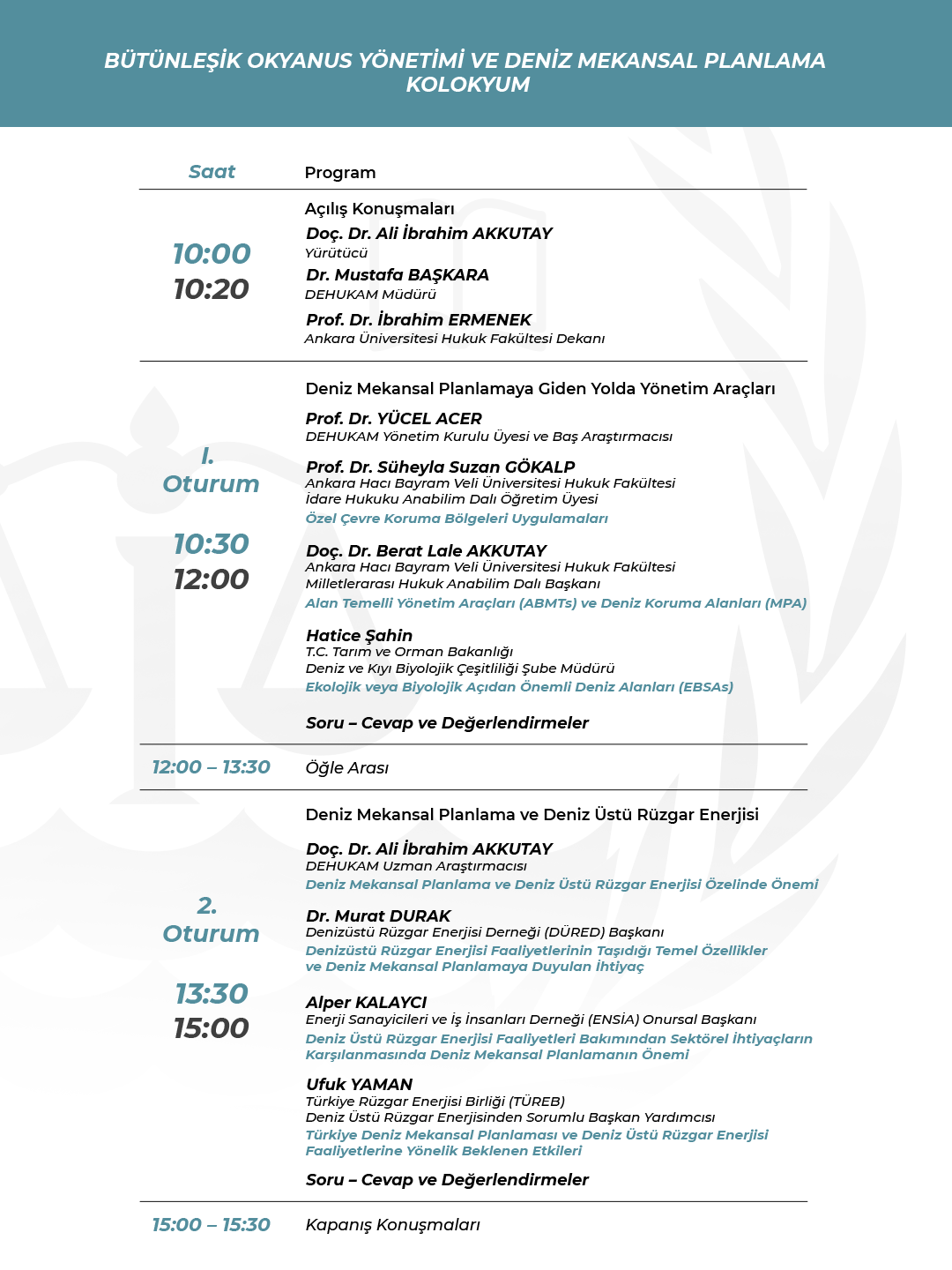 The “Colloquium on Integrated Ocean Management and Marine Spatial Planning” will be held by DEHUKAM on 13 April 2026, between 10:00 AM and 3:00 PM at the Ankara University Faculty of Law, Hall of Honor. This event is organized within the scope of the Scientific and Technological Research Council of Türkiye (TÜBİTAK) 2223-B Program for Supporting the Organization of Domestic Scientific Events.